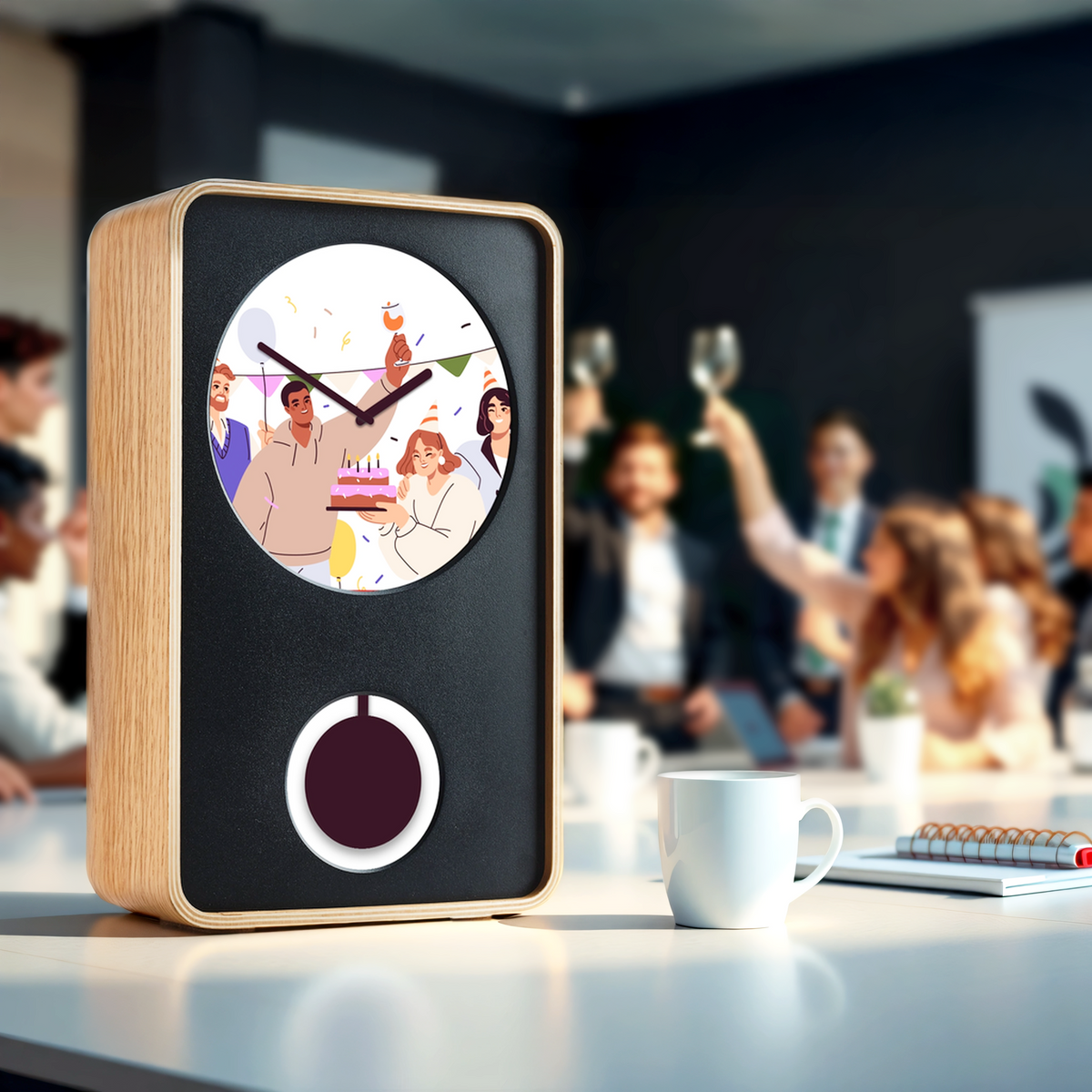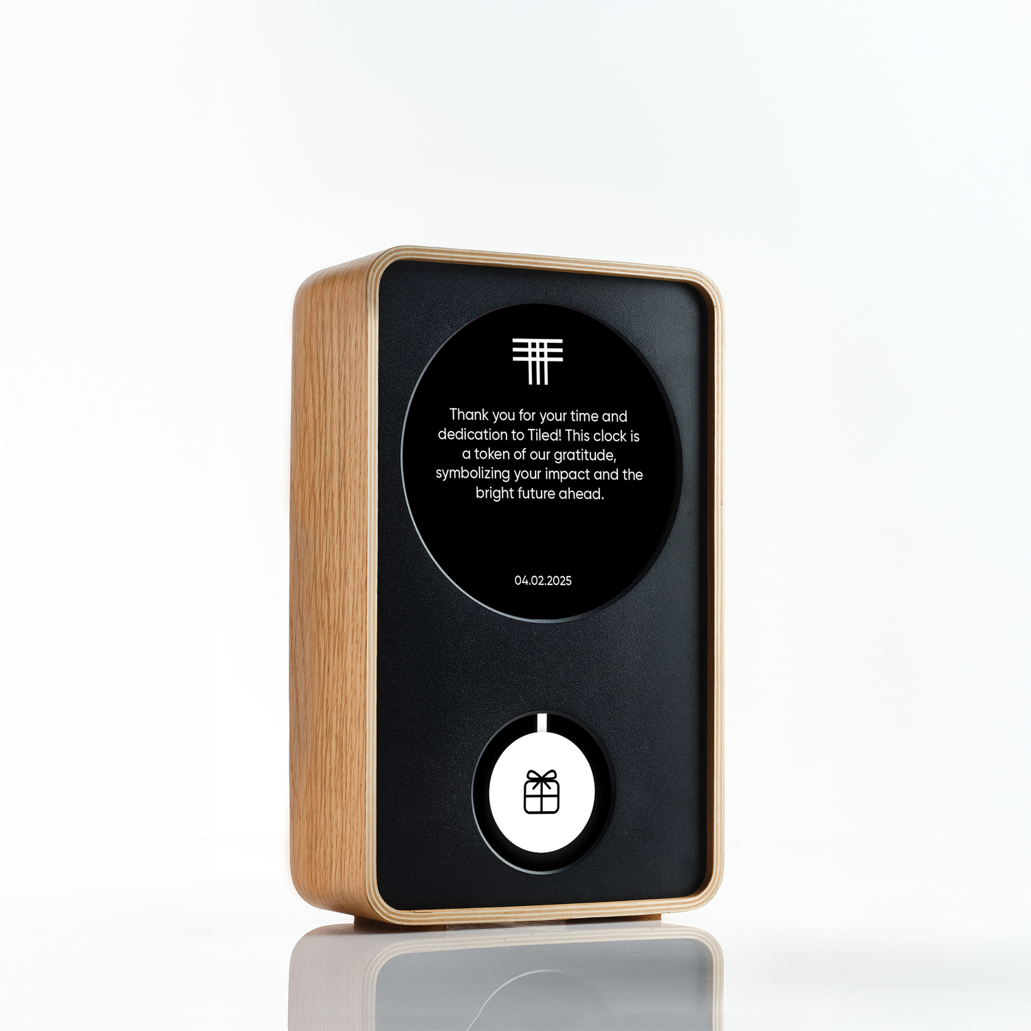 Companies can feature a custom animation on their Klydoclock, reflecting their brand themes, logo, and visual identity. We also offer the option to include your logo on the pendulum. For gifting, we can create a personalized Klydo Greet, which includes a custom animation and a message for the recipient. For deeper branded experiences, please reach out through the form and a member of our team will follow up.