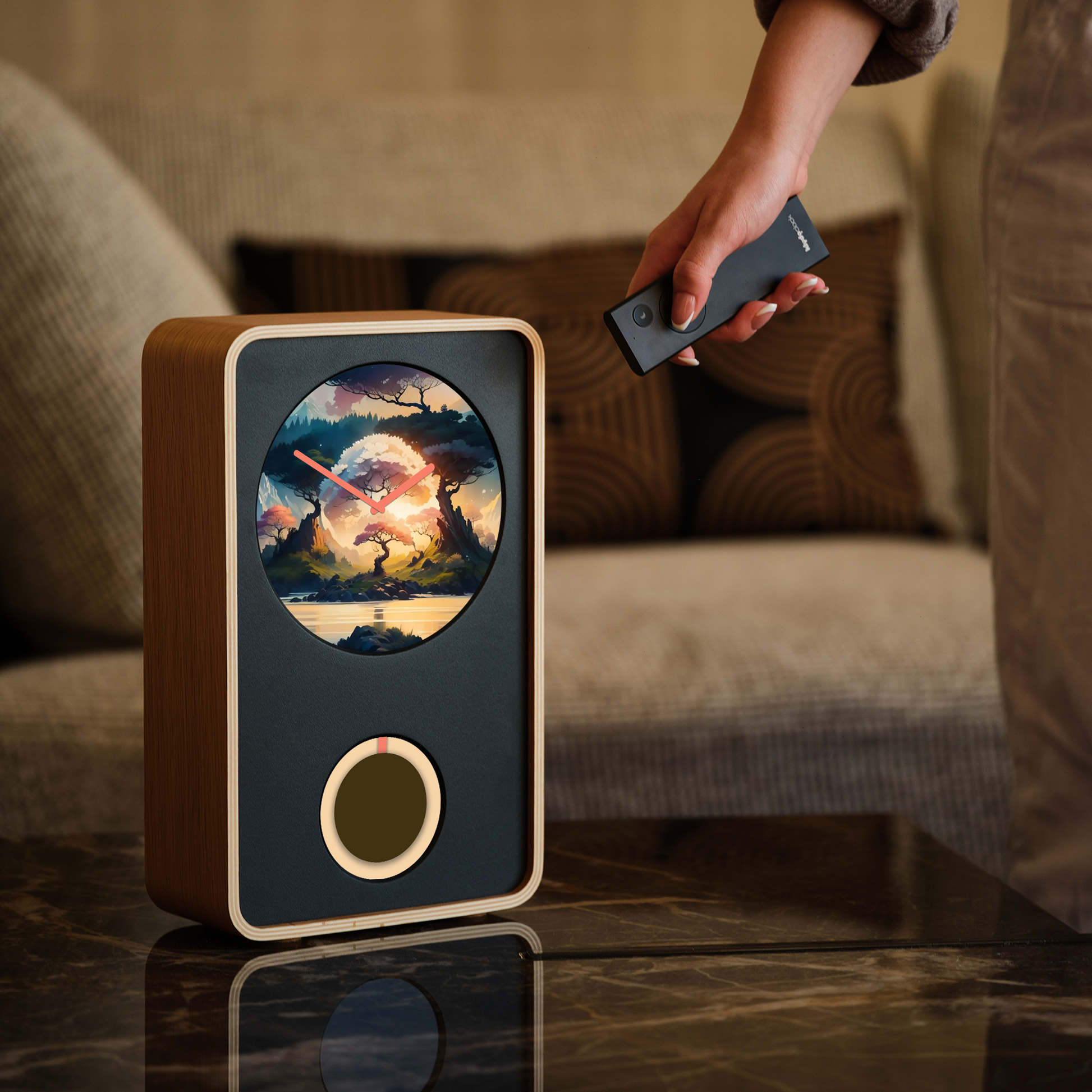 Browsing is through our endless Klydo feed is simple with the included remote control. You can use it to select animations, mark favorites, and adjust your clock settings to suit your needs. Plus, a new app experience is coming soon, offering an exciting new way to discover and enjoy Klydo animations! Stay tuned.